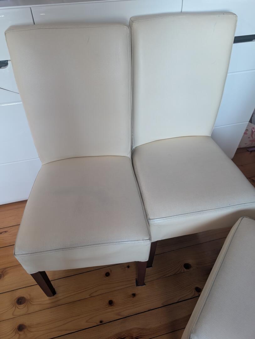 Sprzedam używane krzesła, 8 sztuk, kremowe, nie są porwane lecz posiadają widoczne zabrudzenia.